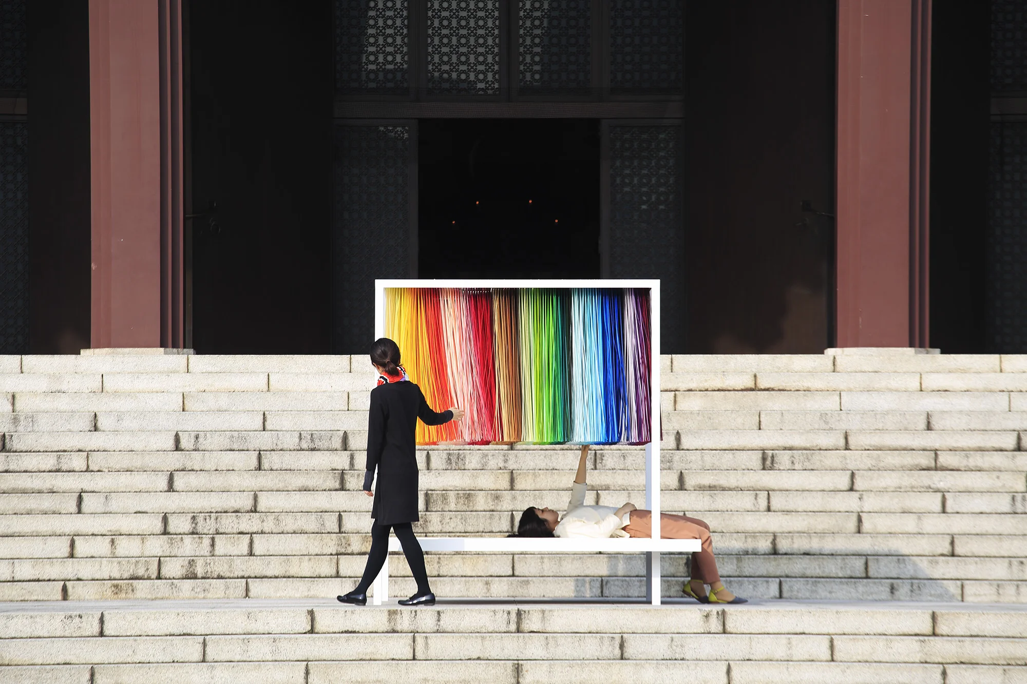 In "100 colors", Colors are explored in various forms depending on the environment, to maximize the beauty of colors. 100 colors entering the body with a glance triggers a physical response to engage with the sensation of colors. The installation series will continue to travel around the world.
