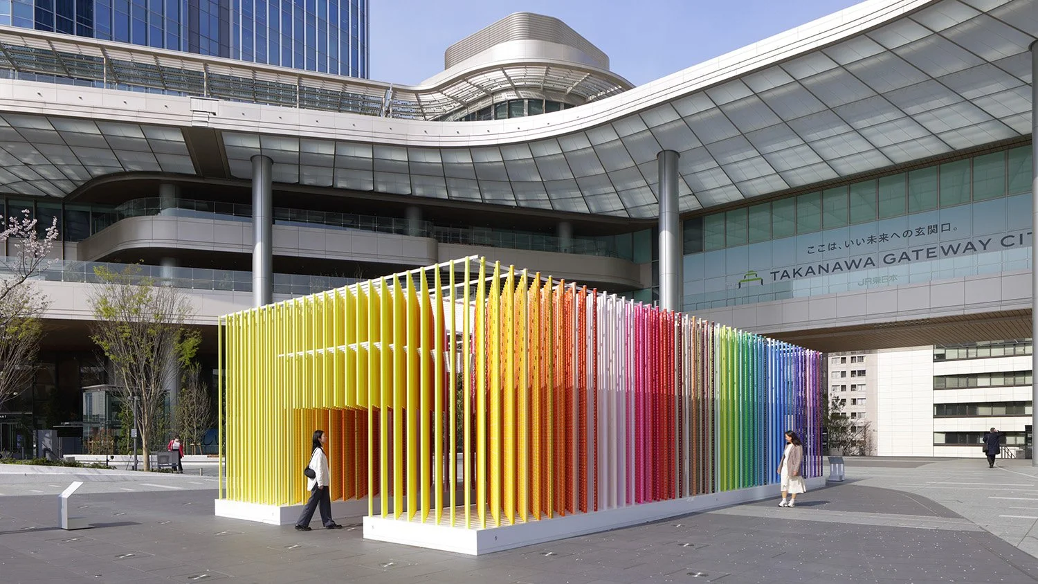 "100 colors path", the no.53 work in the "100 colors" series, is an art installation made of countless lines in 100 colors. Each line is engraved with a year from 2025 to 100 years into the future, representing the passage of time in 100 colors. The gate-shaped artwork celebrates the grand opening of "TAKANAWA GATEWAY CITY"—Tokyo’s new urban complex developed by East Japan Railway Company.
