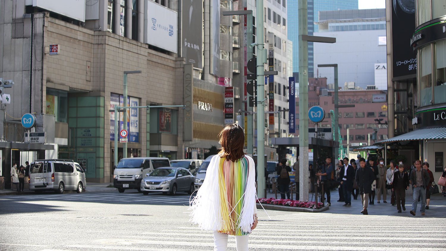 Wearing mino, the colorful and airy lines flow pleasantly, leaving traces of colorful wind in our ordinary cityscape.